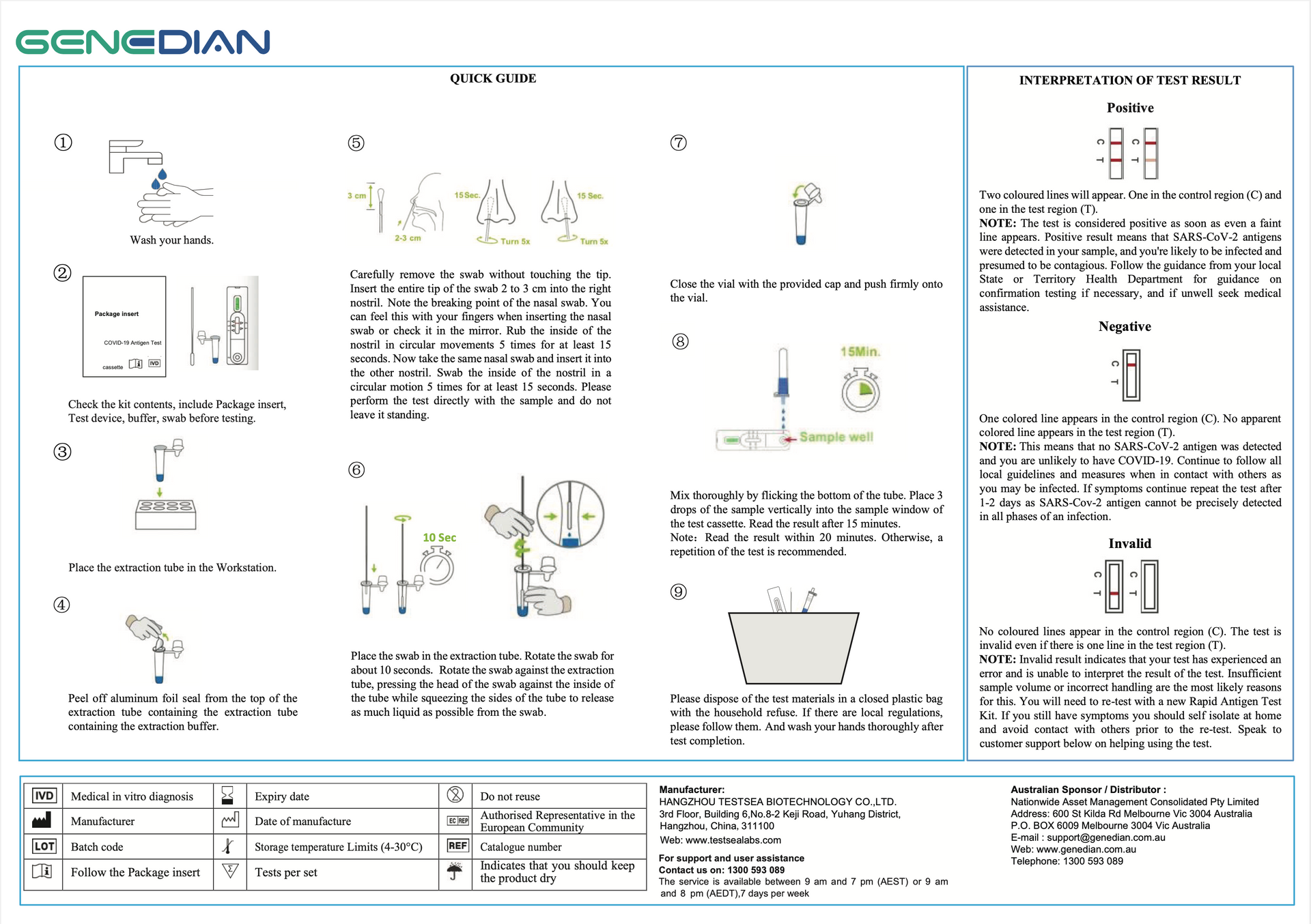 The GENEDIAN Covid-19 Antigen Test Cassette is a rapid chromatographic immunoassay for the qualitative detectionof COVID-19 antigen in Nasal Swab in individuals suspected of COVID-19 infection. This kit is used for self-testing.